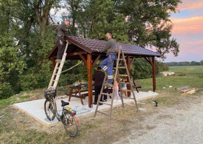 Az egész történet egy nagyon egyszerű gondolattal indult. A polgári társulásunk tagjai sokat kerékpároznak a Duna mentén, különösen a hosszú, forró nyári napokon. Egy idő után mindannyiunkban megfogalmazódott: milyen jó lenne, ha lenne itt egy igazi pihenőhely. Egy pont, ahol meg lehet állni, leülni, árnyékba húzódni, inni egy korty vizet, és csak csendben nézni a Dunát.