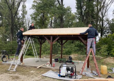 A kivitelezés során a helyi közösség és vállalkozók támogatása kulcsszerepet játszott. A Vicente torns 1 000 euróval, a TechniCAD s.r.o. szintén 1 000 euróval járult hozzá a megvalósításhoz, míg az Ekecsi Tetős (Strechy Okoc) – ARRI s.r.o. a teljes tetőfedő anyagot biztosította. Ezek a hozzájárulások nemcsak anyagi segítséget jelentettek, hanem megerősítettek bennünket abban is, hogy a közösség hisz ebben a kezdeményezésben.