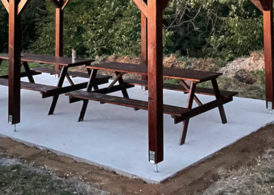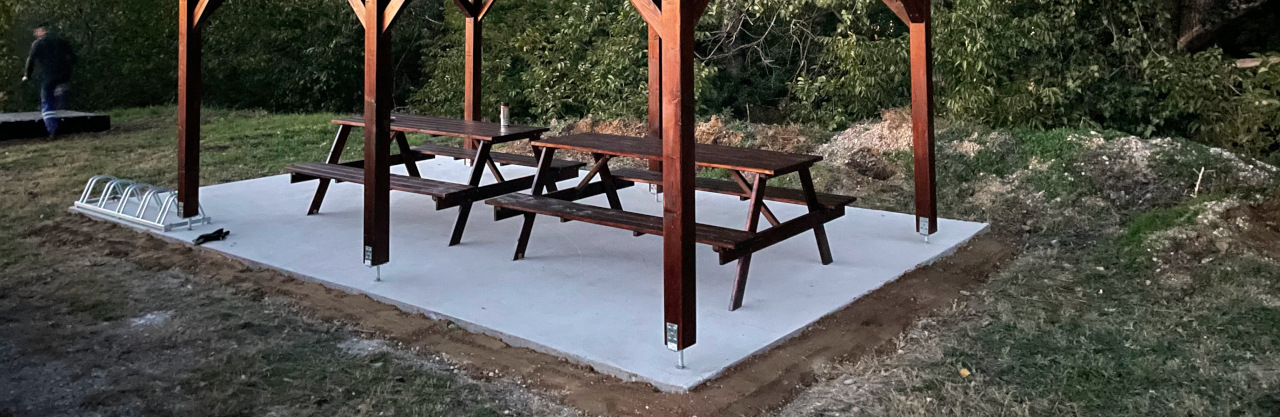 Az eredeti elképzelés néhány egyszerű szabadtéri padról szólt. Aztán asztal lett belőle. Később két asztal padokkal. Végül megszületett a döntés: építsünk egy valódi, nyeregtetős altánt, beton alapokkal, hosszú távra tervezve. Így lett a pihenőből igazi kiülő – olyan hely, amely nemcsak megállásra, hanem maradásra is hív.