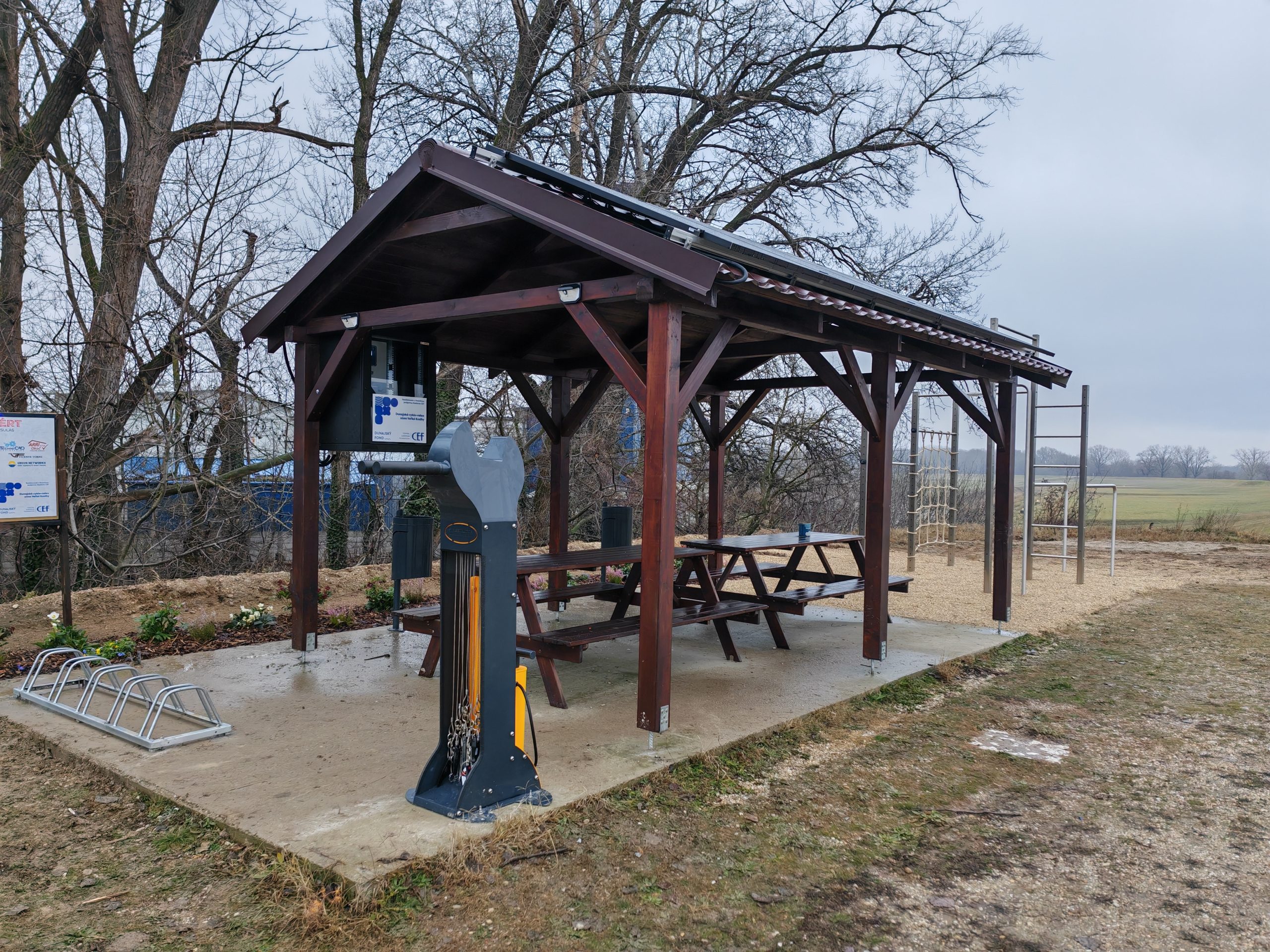 - egy kerékpáros szervizoszlop pumpával és alap szerszámokkal, mivel a környéken erre komoly igény mutatkozott,
